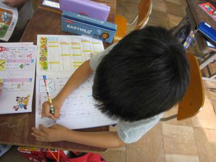 1年1組では,「大」という新しい漢字の練習をしていました。