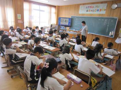 3年3組では,国語の時間に「つたえよう 楽しい学校生活」という学習をしています。今日は,昨日の社会見学を題材にして作文を書いていました。