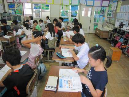 6年1組では,家庭科の時間に学習してきた「ミシン」の使い方についての復習をしていました。