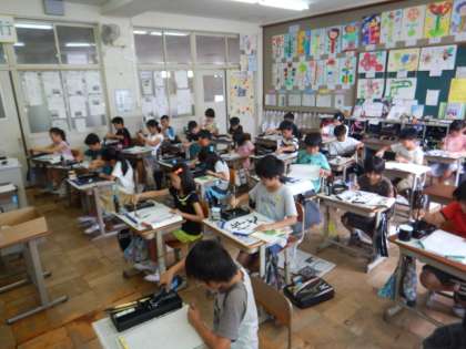 子どもたちは,集中して一画一画ていねいに書きあげていました。