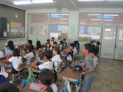 4年4組では,「満員電車の中で」というお話をもとに,「親切な心」について考えていました。