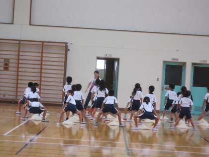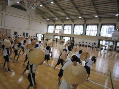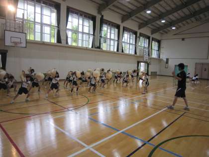 全員そろっての練習では,「またわり」をしてしっかりと腰を落として演じようというめあてをもって練習していました。