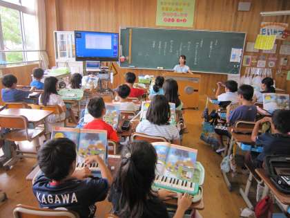 3年2組では,音楽の時間に「うさぎ」という曲の練習をしています。