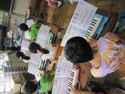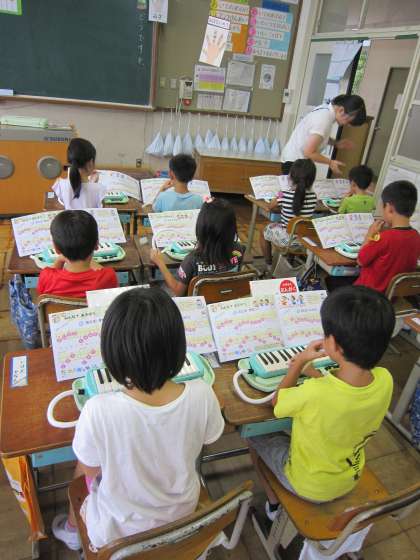1年生は,音楽の時間に「おとのまねっこ」という曲を鍵盤ハーモニカで演奏しようと練習しています。