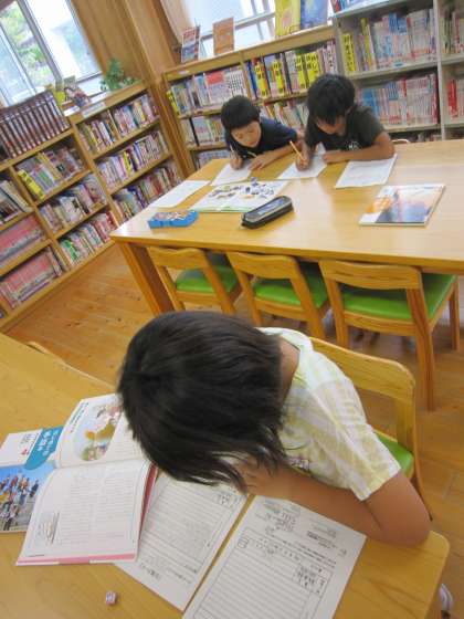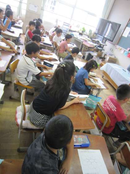 4年生は,総合的な学習の時間に「人にやさしい桂坂」をテーマに調べ学習に取り組んでいます。1組では,図書室とコンピュータ室に分かれて調べていました。