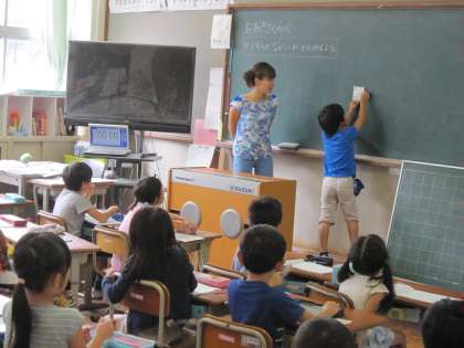 1年1組では,自分の筆箱から選んだ鉛筆を使って,大きさ比べをしていました。