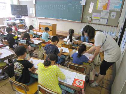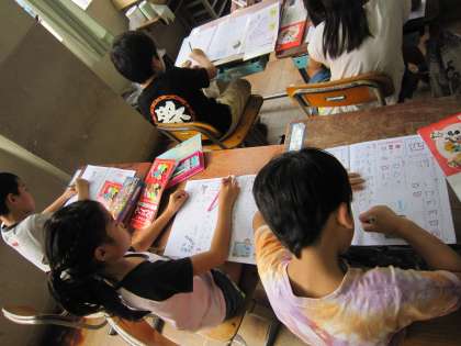1年3組では,「五」という新しい漢字を学習していました。