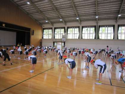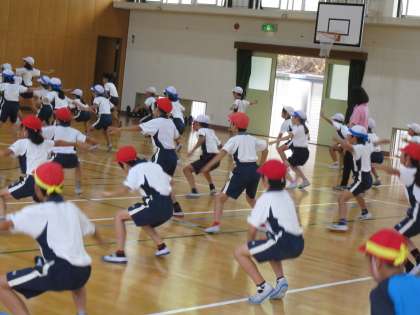 4年生は,体育館で「ニャティティソーラン」の練習をしていました。