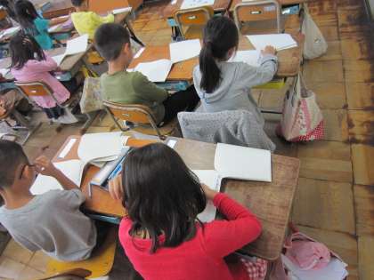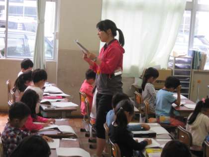 子どもたちは,担任の読む台本に耳を澄ませて聞いていました。