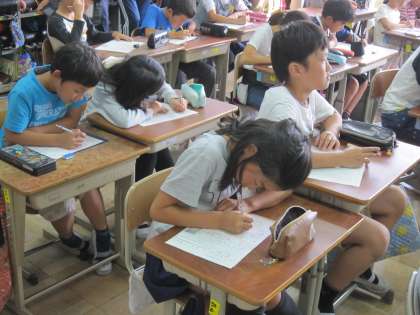 4年2組では,「心と心のあく手」という資料を使って,相手を思いやる心について話し合いました。