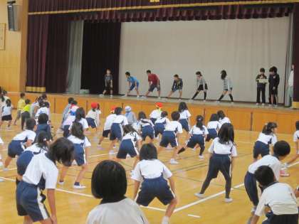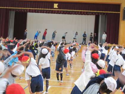 中間休みと昼休み,体育館では運動会で行う「桂坂体操」の練習をしていました。