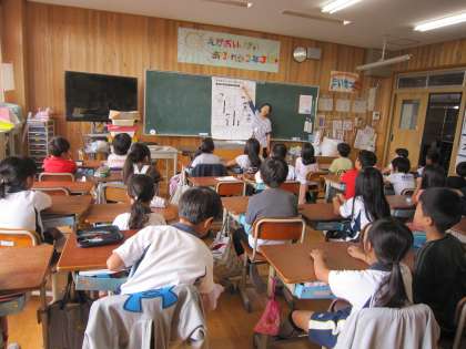 3年3組では,栄養教諭が「好ききらいしないで食べよう」というテーマで食についての学習をしていました。