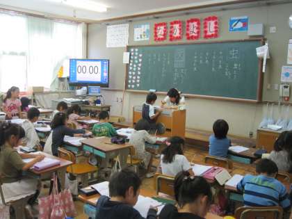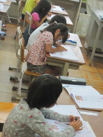 1年4組では,新しい漢字「虫」と「文」を学習していました。