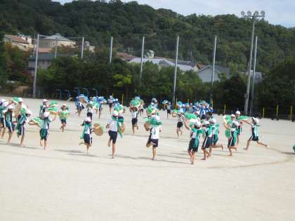 2年生は,運動会で披露する「花笠音頭」の練習に取り組んでいます。
