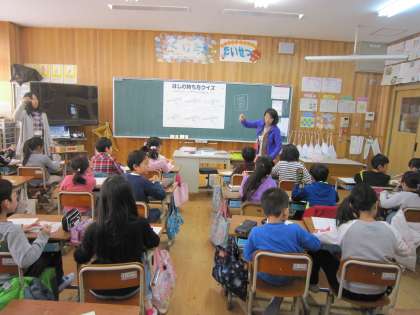 3年1組では,栄養教諭と「おはしの持ち方」について学習していました。