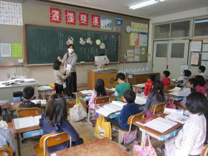 1年生は,国語で「たぬきの糸車」を学習中です。