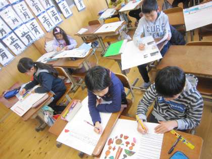 3年は,地域の方々や地域の施設の方にお世話になり「桂坂探検隊」として桂坂の良いところを調べてきました。今日の3組では,調べたことをまとめていました。