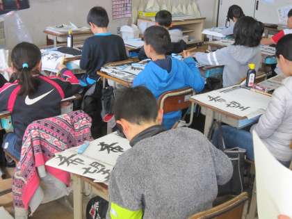 5年4組では,習字の時間に「希望」という字を書いていました。