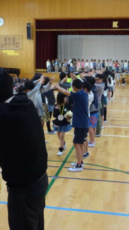 そして、上級生からの歌のプレゼントに続いて、1年生からも歌のお返しがありました。1年生からの歌が始まると、会場のみんなから手拍子が起こり、全校の子どもたちと教職員の心が一つになりました。