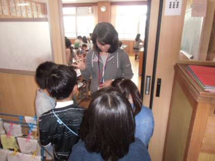 まず、何をする部屋か,どんなものがあるかなど,インタビューしたいことをグループで考えました。そして,言い方など練習をしてから,インタビューをしました。そして,今看板の作成中です。