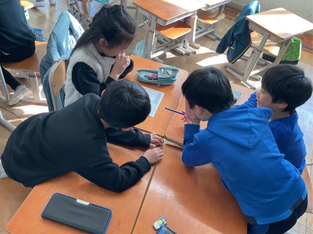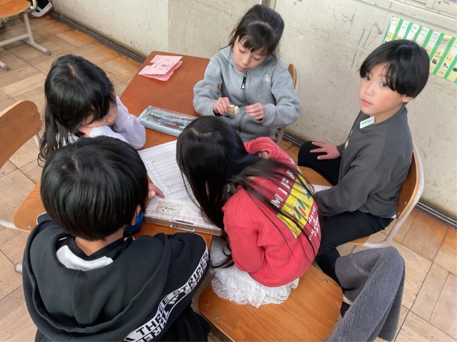 集めた情報を「1年生に発表したい!」ということで、今日から準備を始めています。今日は、発表までにどんな準備がいるのか、どんな発表の仕方がいいのかをグループで話し合いました。