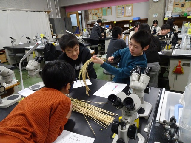 精米された白いお米と玄米とのちがいや、葉や茎の特徴、でんぷんはイネのどこで作られているのかなど、学校ではなかなかできない実験を通して、様々な気づきと学びをえることができました。
