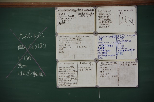 について話し合いを行いました。何気ない撮影や投稿であっても、相手のプライバシーを侵害したり、からかいや拡散がいじめを生み出したりする危険があることを確認し、自分も友だちも守るためのルールを子どもたち自身の言葉で整理しました。