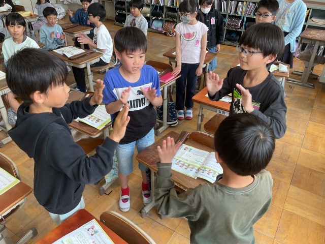 音楽では、「小さな世界」の学習に取り組んでいます。明るく楽しい曲の雰囲気や歌詞に込められた思いを感じ取りながら、元気よく歌っています。歌うだけでなく、手拍子や体を使ったリズム打ちにも挑戦しました。友だちの音をよく聴きながらリズムをそろえたり、強さや速さを工夫したりすることで、音楽をみんなでつくり上げる楽しさを味わっています。