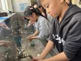 家庭科の調理実習を行いました。グループで野菜のベーコン巻き、豆腐と野菜のチャン...