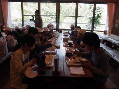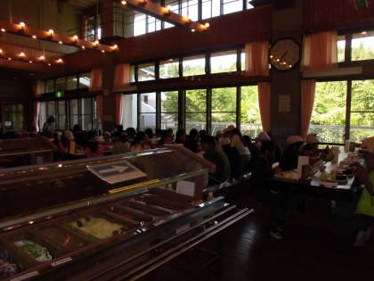 今朝の朝食は、お味噌汁とコンソメスープを選んでのバイキングです。ご飯もパンもありました。スープ・パン派が多かったですが、中にはご飯もパンも食べている人もいました。昨晩の夕飯が、5時半だったので、おなかが減っていたようです。