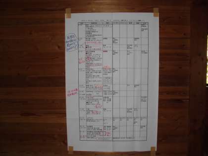 今日の予定が、ミーティングルームに貼ってあります。マジッグで追加の連絡が書き足してあり、みんなはそれを見て行動しています。