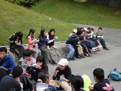 玄関前広場でアイスクリームを食べ、ほっと一息です。