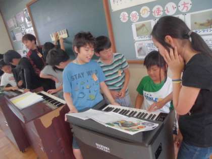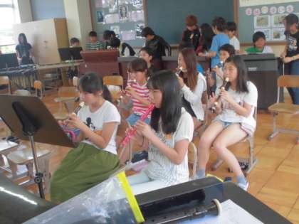 現在,6年生の音楽では小グループに分かれて合奏に挑戦しています。いろいろな音が重なり合うひびきを感じ取ったり,それを生かして表現を工夫しながら取り組んでいます。同じ楽器を演奏しあう人同士が助け合いながら,一生懸命に練習に取り組む姿が本当に素敵な6年生です。発表の日が楽しみです。