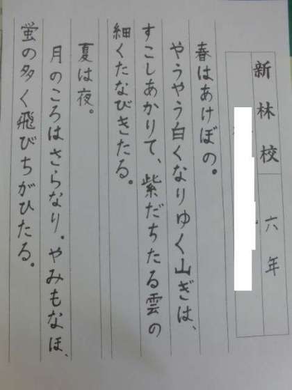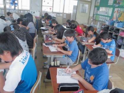 今日の書写では,硬筆展にむけての作品を書きました。お手本をよくみて書いていくのですが,今回使用するのは,えんぴつではなく黒色ペン。「消しゴムが使えない…」というプレッシャーにおしつぶされそうになりながらも,最後まで一生けん命がんばりました。