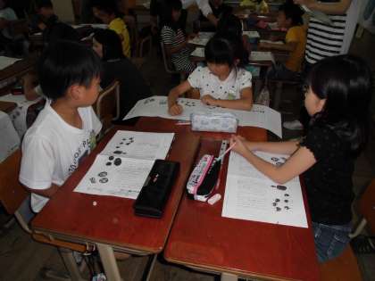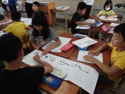 昨日は,国語の第1回の研究授業が3年生1組でありました。『こまを楽しむ』の教材を,はじめ・中・おわり と,大事な言葉を手がかりに,3つに分ける学習でした。ひとり一人考え,そのあと3人組で話し合い,全体で確認しました。