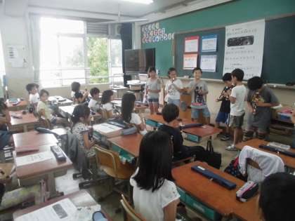 グループで交代に演奏したり,一人対みんなで演奏したりして楽しんでいます。
