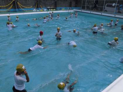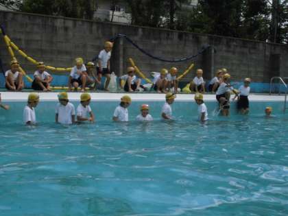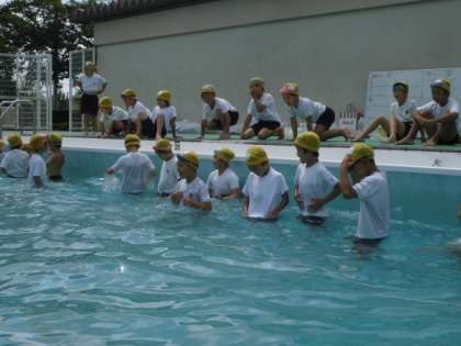 水着の上に,体操服を着て,歩いたり泳いだりしてみました。