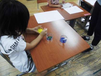 青色の水と黄色の水を混ぜると・・・・
