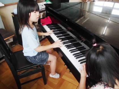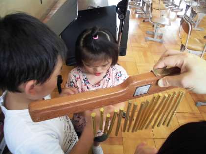 最後には、いつも教室で歌う歌に合わせ好きな打楽器で合奏しました。