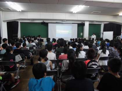 生徒会の代表から中学校の約束や一年間の活動の様子について説明を受けました。