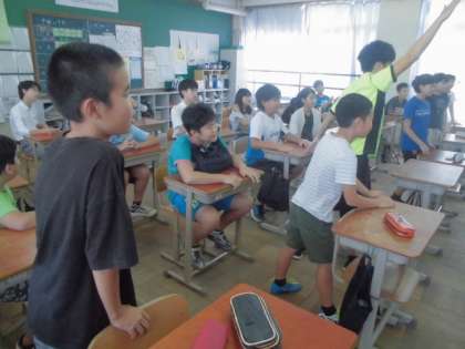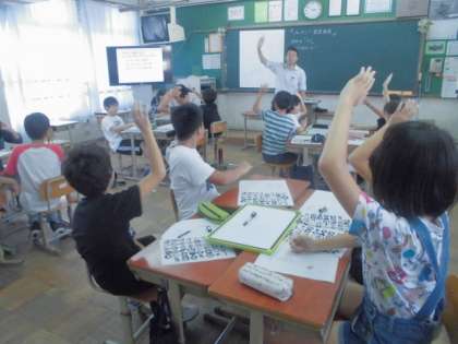 9月8日(金)に洛西中学校でオープンスクールがありました。各教科ごとに分かれ,中学校の先生による授業を受けました。最初は緊張していた子どもたちもだんだんと慣れはじめ,とても楽しんでいました。