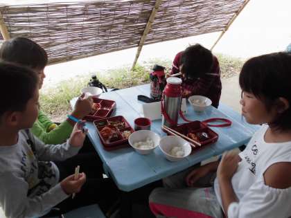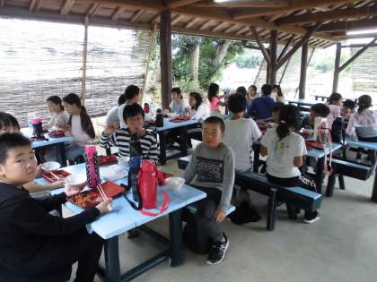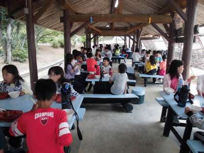 2日目の昼食です。この日は食事を広場の東屋でとりました。