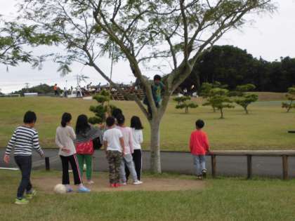 少し時間に余裕ができたので,広場で自由に遊びました。広い芝生で,のびのびと過ごしていました。