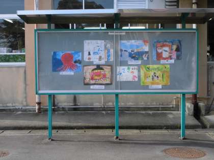 玄関の掲示板にに,4年生のみさきの家の思い出の絵が貼られています。ご来校の際に,ご覧ください。