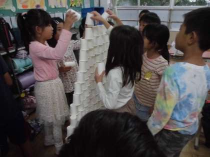 紙コップをたくさん用意し,工夫して遊んでみました。