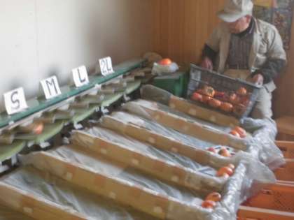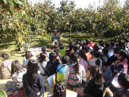 とてもよい天気で,柿畑でお話を聞きました。