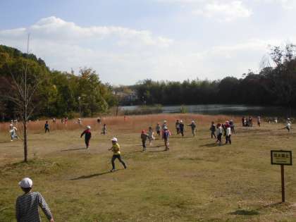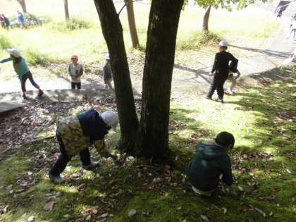 写真は,広場で遊んだり秋見つけをしたりしている様子です。
