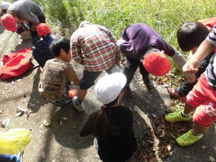 くっつき虫だらけになりながら草の中を走り回ったり,どんぐりを拾ったりしていました。