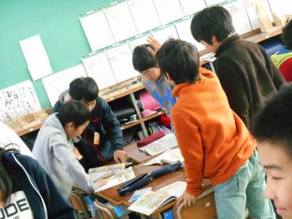 英語版ももたろうのお話を自分たちで実際に演じたり,工夫した表現を楽しむ学習をしています。テキストにはないオリジナルの表現を加えてみたり,ジェスチャーをつけてみたり,グループごとに様々な工夫をしていました。なかには,一人二役する子も。来週の発表会が楽しみです。