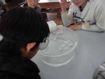 熱して蒸発させる実験を行いました。